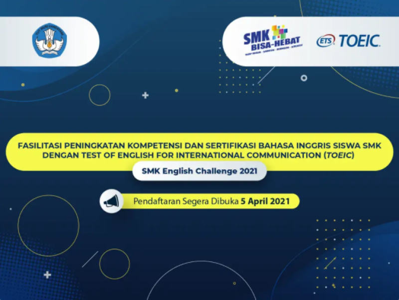 TOEIC bagi siswa SMK yang pendaftarannya akan mulai dibuka 5 April 2021 melalui http://bitly/SMKRegistration. Perwakilan sekolah yang ingin mendapatkan