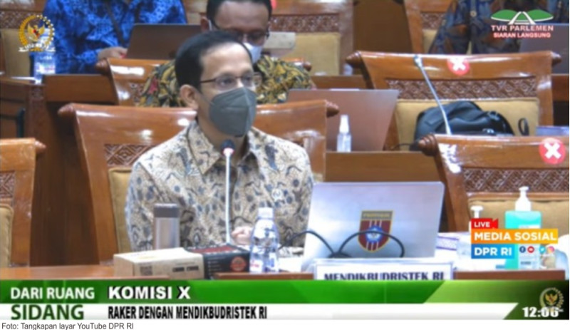 Nadiem dalam raker dengan Komisi X DPR RI yang disiarkan akun YouTube DPR,