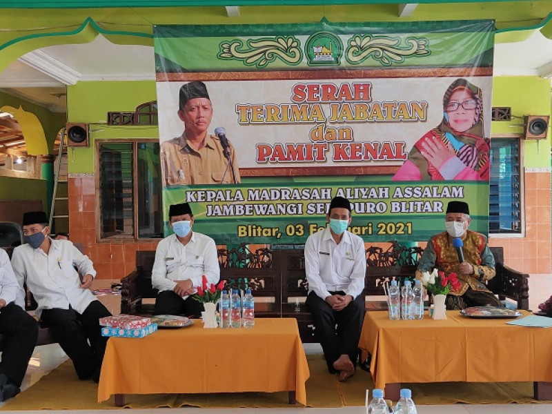 Blitar – Pada Rabu, 03 Februari 2021 diadakan acara serah terima jabatan dan pamit kenal Kepala Madrasah Aliyah (MA) Assalam Jambewangi Selopuro Blitar, dari Kepala Madrasah lama Bapak Srini, M.Pd., S.Pd. ke Kepala Madrasah baru Ibu Dra. Mubarokah yang beralokasi di Masjid Assalam Jambewangi...