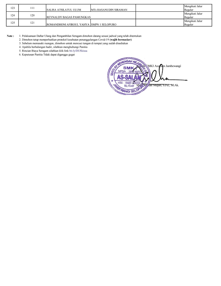 Pengumuman Penerimaan Peserta Didik Baru (PPDB) Jalur PMDK SMKI Assalam Jambewangi Tahun Ajaran 2020/2021